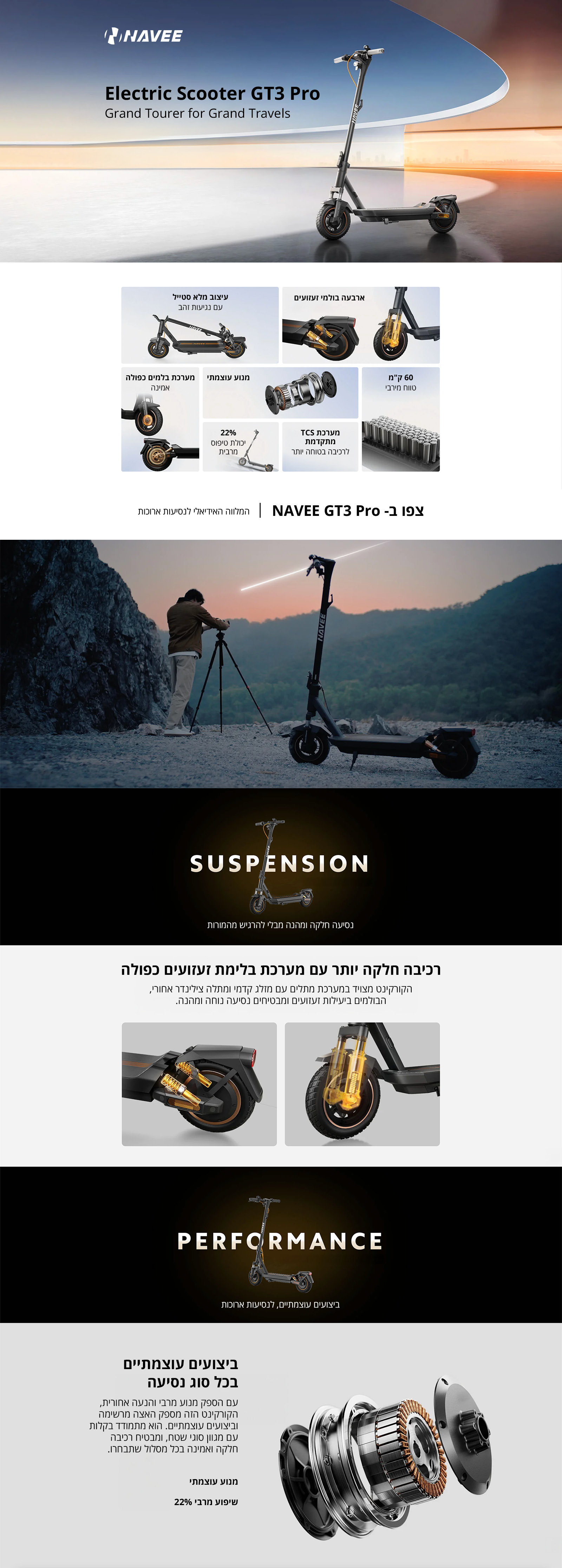שליטה מלאה באמצעות יישומון Navee בקישוריות Bluetooth ועדכוני קושחה תקופתיים - נעילת קירבה אלקטרונית, תאורה אחורית קבועה, השבת אנרגיה בבלימה, תאורה קדמית אוטומטית ועוד.